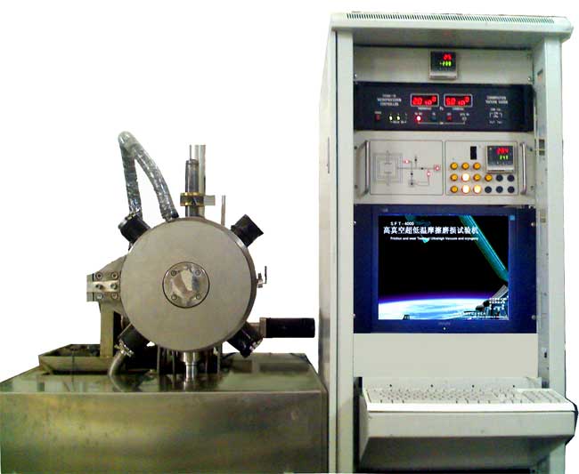 超低溫(超導(dǎo))摩擦磨損試驗(yàn)儀是用真空泵將真空環(huán)境試驗(yàn)室抽真空,抽去不必要的氣體及水分,再利用液氮將真空試驗(yàn)室的溫度降到-180℃以下 , 在低溫下通過磁傳動技術(shù),實(shí)現(xiàn)栓(球)—盤之間摩擦實(shí)驗(yàn),檢測材料摩擦系數(shù)的變化。實(shí)驗(yàn)溫度可以從100℃到-180℃,真空度常壓-10-4Pa,試驗(yàn)方式為球-盤式。運(yùn)用計算機(jī)控制技術(shù),通過砝碼加載機(jī)構(gòu)將負(fù)荷加至栓(球)上,作用于試樣表面,同時試樣固定在測試平臺上,并以設(shè)定的速度旋轉(zhuǎn),通過傳感器獲取摩擦?xí)r的摩擦力信號,經(jīng)放大處理,輸入計算機(jī)經(jīng)A/D轉(zhuǎn)換將摩擦力信號通過運(yùn)算得到摩擦系數(shù)曲線。通過摩擦系數(shù)曲線的變化,從而得到各種材料在低溫條件下摩擦學(xué)特性。